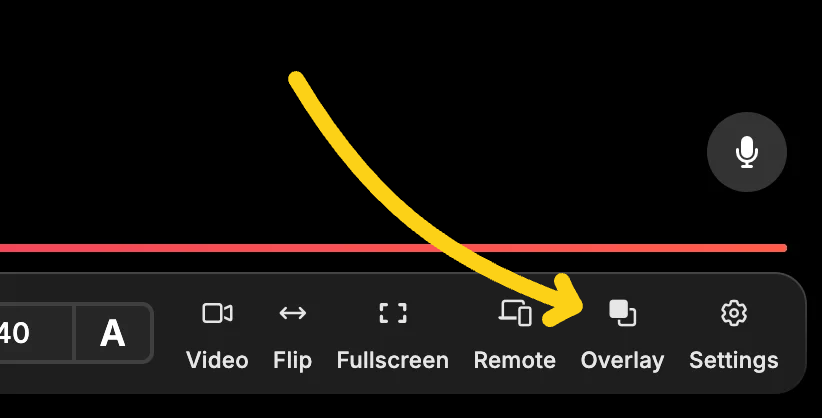 - In Speakflow, click the "Overlay" button in the bottom right corner of the screen. (If you're using a smaller screen, you may see an icon instead of a button.)