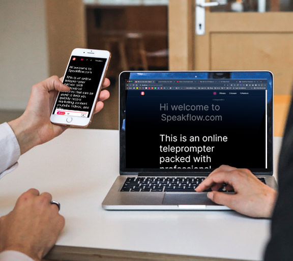 A teleprompter for Zoom, videos, and more. Speakflow is a voice recognition teleprompter that follows along automatically as you read your script.