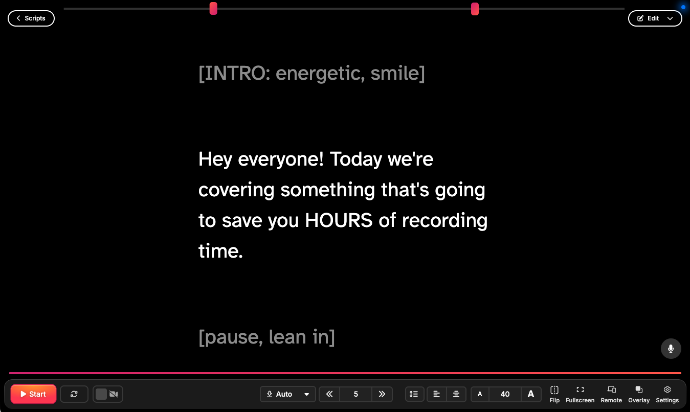 Pro tip: Most teleprompters let you adjust speed with keyboard shortcuts while recording. Learn these for on-the-fly adjustments.